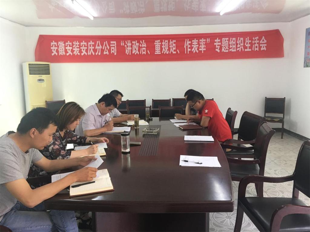 5月21日下午,安慶分公司黨支部召開” 講政治 、重規(guī)矩 、做表率”專題組織生活會(huì),分公司全體黨員參加本次會(huì)議。會(huì)議由支部書記劉紅艷主持。