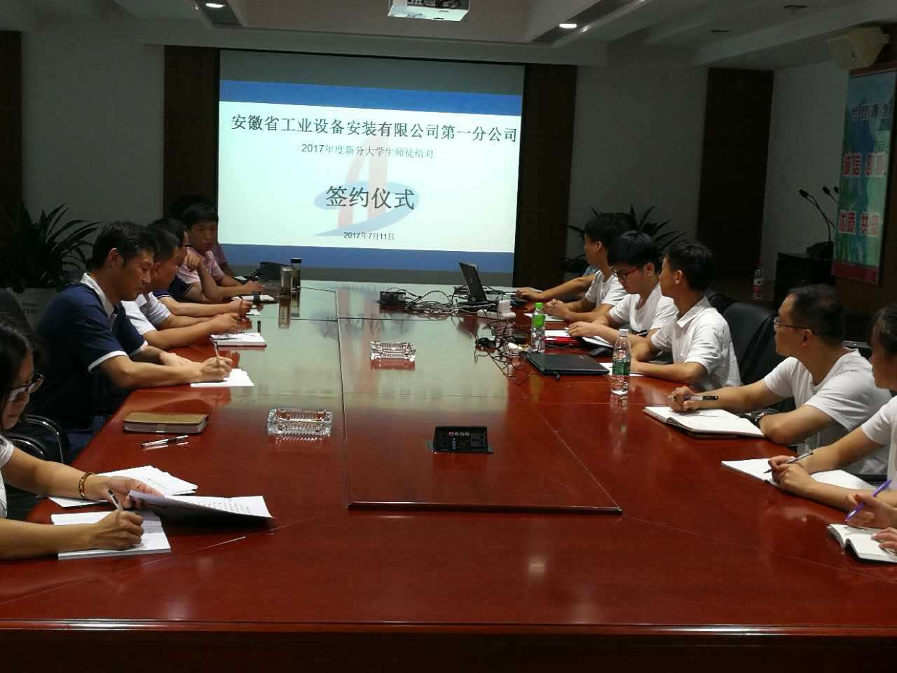 第一分公司2017年新入職員工已完成輪崗實習培訓,即將步入定崗實習階段。為了充分發(fā)揮技術骨干人才的“傳、幫、帶”作用,加強對新人的技術、技能培養(yǎng),7月11日下午,一分公司舉行了師徒協(xié)議簽訂儀式。