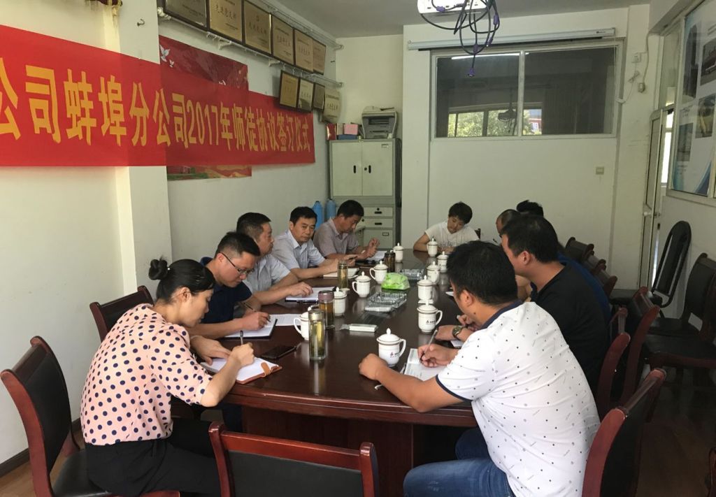 烈日當(dāng)空,酷熱難忍。7月21日下午,公司董事長(zhǎng)、總經(jīng)理王軍邦,在紀(jì)委書記、工會(huì)主席李寬旭陪同下蒞臨蚌埠分公司調(diào)研指導(dǎo)工作。分公司領(lǐng)導(dǎo)班子及相關(guān)部門負(fù)責(zé)人參加了會(huì)議。會(huì)議由李寬旭主持。