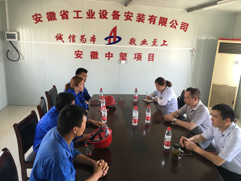 胡六中書記一行首先在施工現(xiàn)場仔細(xì)詢問了工程進展情況和高溫期間工人們的工作時間安排情況,每到一處都親切的與施工人員交談,感謝他們的努力與奉獻,囑咐他們在注意防暑降溫的同時,也一定要注意施工安全。隨后,在中璽項目部會議室,胡書記在聽取項目經(jīng)理李子鳳就施工進度、安全生產(chǎn)、技術(shù)質(zhì)量、文明施工等工作匯報后指出,要根據(jù)夏季高溫天氣的特點合理安排作息時間,要將防暑用品及時發(fā)送到每一位員工手中,保證以健康的身體投入到緊張的工作中,提高安全意識,確保施工安全。