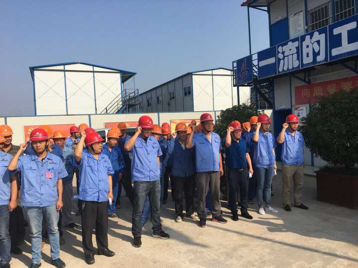 隨著儀式的展開,分公司副經(jīng)理張漢軍帶領全體人員進行了莊嚴的安全宣誓。接著,分公司總工程師梁興邵現(xiàn)場進行安全知識宣講,分公司工會主席、項目臨時黨支部書記程茂麗隨后宣讀了《關于在安徽中煙蚌埠卷煙廠項目部開展“中煙項目干勁足 安全生產(chǎn)爭先鋒”勞動競賽活動的通知》。最后,項目執(zhí)行經(jīng)理郭洋代表項目部表態(tài)發(fā)言:一定會以本次活動為契機,加強現(xiàn)場安全管理,努力提升項目安全管理水平再上新臺階。