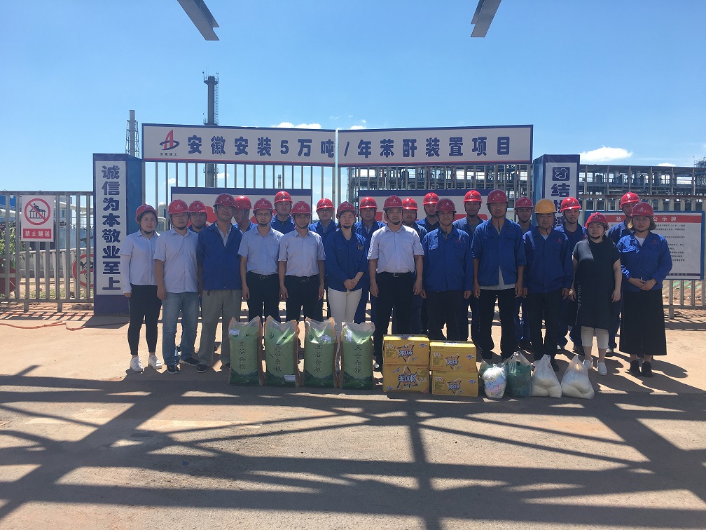 炎炎夏日,驕陽(yáng)似火。為做好高溫季節(jié)防暑降溫工作,確保一線職工的健康安全,7月17日下午,公司董事長(zhǎng)、總經(jīng)理、黨委副書(shū)記王軍邦,在紀(jì)委書(shū)記、工會(huì)主席李寬旭和副總經(jīng)理李原等公司相關(guān)部門負(fù)責(zé)人的陪同下,深入安慶分公司力天環(huán)保項(xiàng)目部,為堅(jiān)守在一線的員工送去綠豆、白糖、礦泉水、藿香正氣水等防暑降溫慰問(wèn)品。