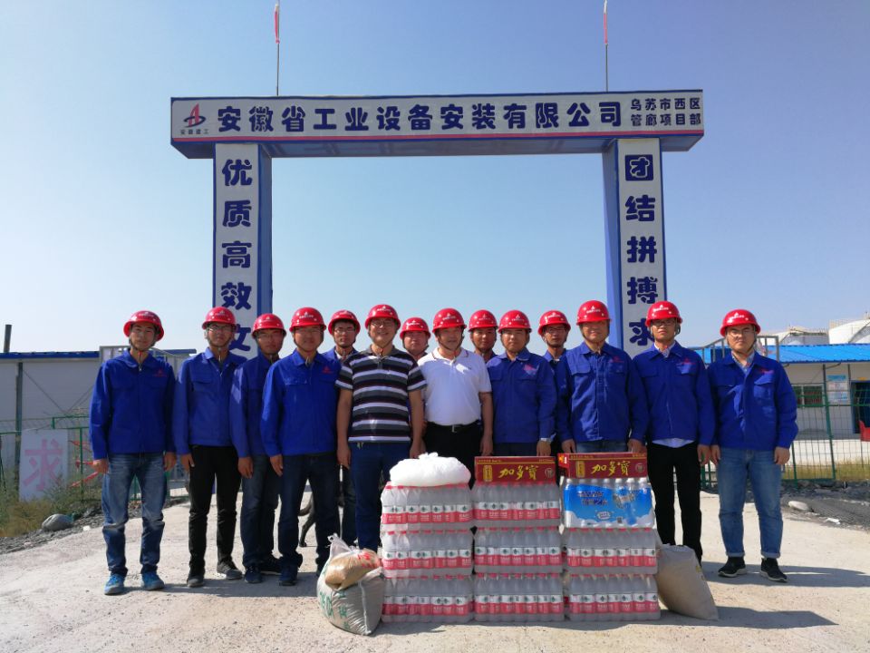 2018年7月21日下午,公司董事長(zhǎng)、總經(jīng)理、黨委副書(shū)記王軍邦、總會(huì)計(jì)師張?jiān)箜斨胰镇滉?yáng)在公司總經(jīng)理助理、西北分公司經(jīng)理、新疆辦事處主任、項(xiàng)目經(jīng)理王軍的陪同下,深入新疆烏蘇市西區(qū)管廊工程項(xiàng)目部,為堅(jiān)守在一線的員工送去礦泉水、綠豆、蕎麥、冰糖、藿香正氣水等防暑降溫慰問(wèn)品。