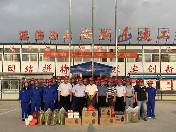 牛曙東一行一到工地就深入施工現(xiàn)場察看項(xiàng)目安全防護(hù)設(shè)施、文明施工、工程進(jìn)展情況,還仔細(xì)詢問員工的工作、生活和項(xiàng)目黨建工作等。為奮戰(zhàn)在高溫中的一線職工送去了礦泉水、綠豆、毛巾等防暑藥品等慰問品,關(guān)切職工工作和身體狀況,深入到職工宿舍、食堂實(shí)地查看職工居住和生活條件。詳細(xì)了解高溫期間工作安排情況,并向堅(jiān)守在高溫一線的職工表示親切慰問和感謝。牛曙東指出,連續(xù)高溫天氣,一線職工始終堅(jiān)守在崗位,落實(shí)高溫天氣作業(yè)安全防范措施,做好當(dāng)前防暑降溫工作,防止職工中暑,確保人身安全。