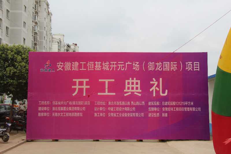 2018年7月29日下午,陽(yáng)光燦爛,旌旗招展,隨著震耳欲聾的鞭炮聲響起,安徽安裝房建分公司承建的淮北恒基城開(kāi)元廣場(chǎng)項(xiàng)目正式開(kāi)工。公司副總經(jīng)理劉安俊,分公司副經(jīng)理許杰、王政邦出席了開(kāi)工儀式。