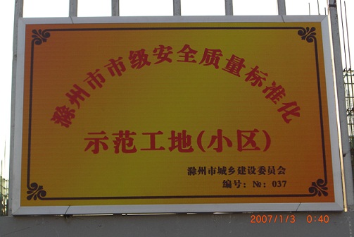 2010年12月31日,滁州分公司承建的皖投水岸星城一期三標(biāo)段工程成功創(chuàng)建滁州市安全質(zhì)量標(biāo)準(zhǔn)化示范工地。