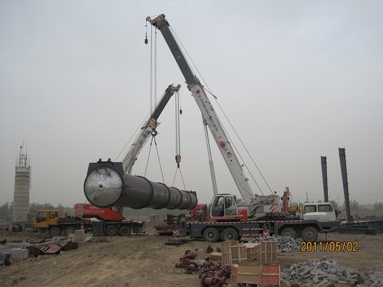5月1日上午9時(shí)許,隨著一陣鞭炮聲響徹鳳陽僑裕新型建材有限公司施工工地,蚌埠分公司承建的鳳陽僑裕8臺(tái)蒸壓斧吊裝工作由此拉開了序幕。待安裝蒸壓斧單臺(tái)直徑2米、長32米、重約35噸。9點(diǎn)15分,隨著一聲號(hào)令,兩臺(tái)50T和70T吊車緩緩收鉤,在現(xiàn)場 “起臂、轉(zhuǎn)臂、扒臂、起鉤、落鉤”等手勢的正確指揮下,第一臺(tái)蒸壓斧就象一條巨龍騰空而起,9點(diǎn)25分穩(wěn)穩(wěn)地落在預(yù)定的位置上,至5月2日11時(shí)最后兩臺(tái)設(shè)備就位,順利完成了全部吊裝任務(wù)。本次吊裝作業(yè)由于項(xiàng)目部安排得當(dāng)、組織有力、協(xié)調(diào)到位,整個(gè)吊裝作業(yè)安全規(guī)范,現(xiàn)場施工井然有序,安徽省安的專業(yè)施工能力再次得到檢驗(yàn)!