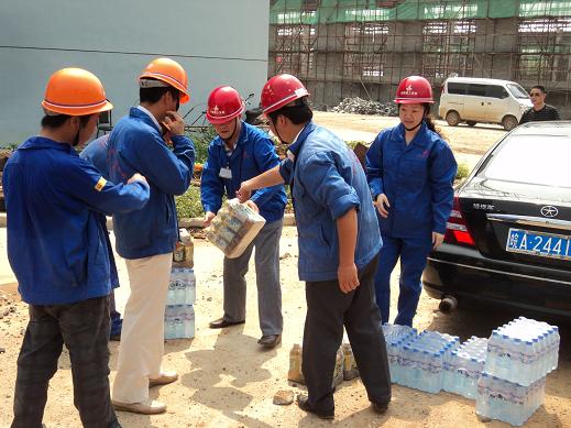 7月28日,氣溫高達36度,酷暑難耐,分公司書記、經理李貴林,副經理史崇松、方斌、劉紅艷一行深入一線工地,慰問戰(zhàn)斗在一線的生產、管理人員。每到一處,李貴林同志都會關切的詢問防暑和安全情況,并將一箱箱礦泉水送到一線人員的手中,使他們在夏日里感受到了一縷清爽的涼風。