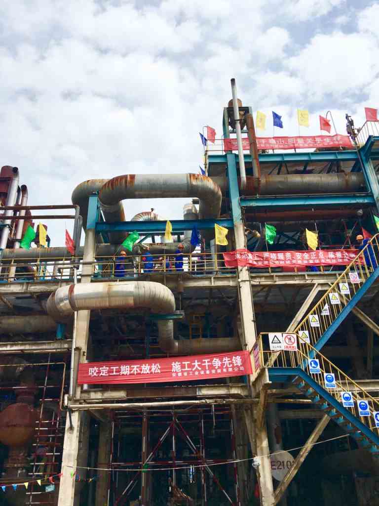 時值中石化安慶分公司全廠停工大檢修期間,安慶分公司承攬的增設(shè)航煤水路出廠設(shè)施、耐硫變換裝置低水氣改造項目、乙苯加熱爐三個大修項目相繼開工,均要求八月底完工。時間緊,任務重,為確保能夠如期完工,安慶分公司開展以“咬定工期不放松,施工大干爭先鋒”為主題的石化大修綜合項目勞動競賽。