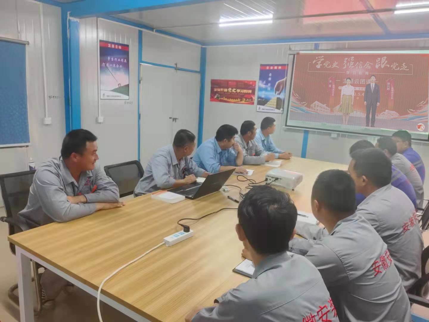 項(xiàng)目部積極響應(yīng)公司黨史學(xué)習(xí)教育要求,促進(jìn)黨史學(xué)習(xí)充分融入生產(chǎn)一線,營造出濃厚的“學(xué)黨史、促生產(chǎn)”的良好氛圍。5月1日,項(xiàng)目部開展了黨史學(xué)習(xí)教育交流會,會上項(xiàng)目部黨員皮軍同志帶領(lǐng)大家集中學(xué)習(xí)了《中國共產(chǎn)黨基本知識》并開展了黨史學(xué)習(xí)交流討論。5月4日,項(xiàng)目部組織團(tuán)員青年通過線上觀看節(jié)目的方式觀看了由共青團(tuán)中央、全國學(xué)聯(lián)舉辦的“學(xué)黨史、強(qiáng)信念、跟黨走”大型網(wǎng)絡(luò)直播主題云團(tuán)課學(xué)習(xí)活動,在歌聲中感受激情燃燒的光輝歲月,在影像影視中見證時(shí)代的發(fā)展、歷史的變遷。