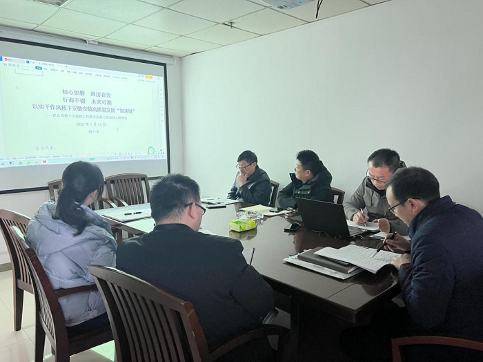 會上,分公司黨支部書記、經(jīng)理龍海健重點宣貫、詳細解讀了公司黨委書記、董事長胡六中在公司十七屆三次職代會上所作的題為《初心如磐踔厲奮發(fā)行而不輟未來可期以實干作風(fēng)按下安徽安裝高質(zhì)量發(fā)展“加速鍵”》的報告精神,對分公司2023年度主要任務(wù)指標(biāo)和重點工作進行了傳達部署。通過學(xué)習(xí),分公司全體員工對公司2022年取得的成績有了深刻的認識,進一步明確了公司2023年的奮斗目標(biāo)、工作思路和部署安排。