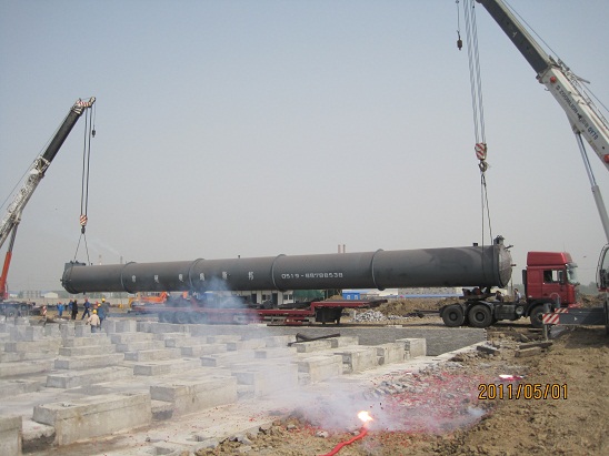 5月1日上午9時(shí)許,隨著一陣鞭炮聲響徹鳳陽僑裕新型建材有限公司施工工地,蚌埠分公司承建的鳳陽僑裕8臺(tái)蒸壓斧吊裝工作由此拉開了序幕。待安裝蒸壓斧單臺(tái)直徑2米、長32米、重約35噸。9點(diǎn)15分,隨著一聲號(hào)令,兩臺(tái)50T和70T吊車緩緩收鉤,在現(xiàn)場 “起臂、轉(zhuǎn)臂、扒臂、起鉤、落鉤”等手勢的正確指揮下,第一臺(tái)蒸壓斧就象一條巨龍騰空而起,9點(diǎn)25分穩(wěn)穩(wěn)地落在預(yù)定的位置上,至5月2日11時(shí)最后兩臺(tái)設(shè)備就位,順利完成了全部吊裝任務(wù)。本次吊裝作業(yè)由于項(xiàng)目部安排得當(dāng)、組織有力、協(xié)調(diào)到位,整個(gè)吊裝作業(yè)安全規(guī)范,現(xiàn)場施工井然有序,安徽省安的專業(yè)施工能力再次得到檢驗(yàn)!