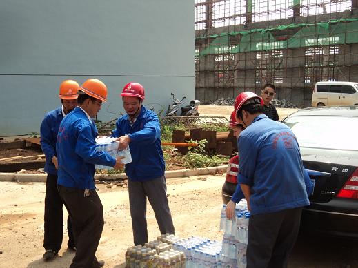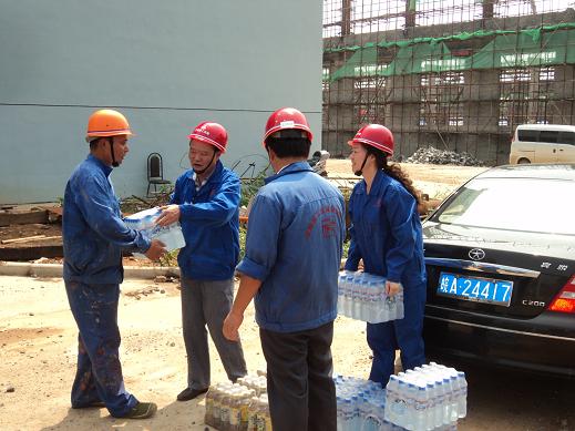 7月28日,氣溫高達36度,酷暑難耐,分公司書記、經理李貴林,副經理史崇松、方斌、劉紅艷一行深入一線工地,慰問戰(zhàn)斗在一線的生產、管理人員。每到一處,李貴林同志都會關切的詢問防暑和安全情況,并將一箱箱礦泉水送到一線人員的手中,使他們在夏日里感受到了一縷清爽的涼風。